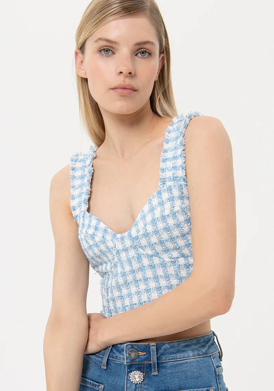 TOP CROPPED A CUADROS SKYWHITE - FRACOMINA